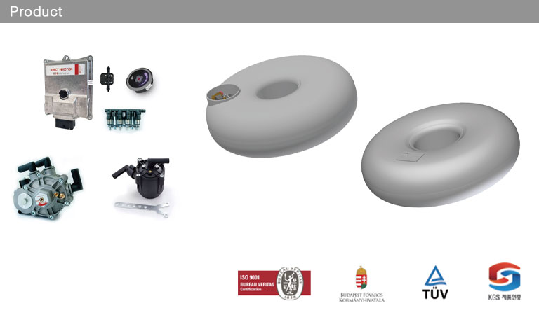 자동차부품사업부는 자동차용 가스연료 공급장치 전문으로, GM모터스, 쌍용자동차 등 자동차 제조사 및 관련 부품사와 협력하고 있으며, LPG/CNG 분사장치와 도넛형 LPG용기의 연구, 개발, 납품을 담당하고 있습니다.